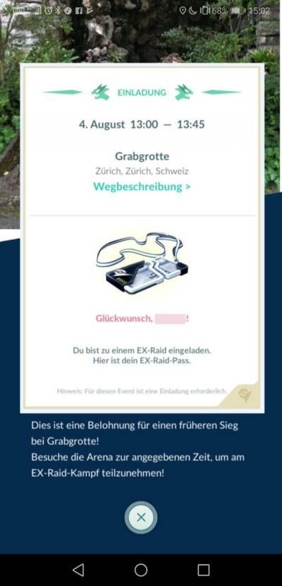 Einladungen für EX Raids gehen nur für bestimmte Arenen raus. Welche Arenen dafür in Frage kommen unterliegt einigen von der Community aber (grösstenteils) geknackten Kritieren - die Theorie soll hier aber nicht im Mittelpunkt stehen; hier ist ein Link zu allen EX-Raid-fähigen Arenen in Winterthur: