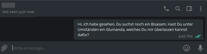 Handelt dann einfach noch per Telegram aus, was Ihr als Bieter im Gegenzug haben möchtet sowie wann Ihr Euch treffen möchtet.