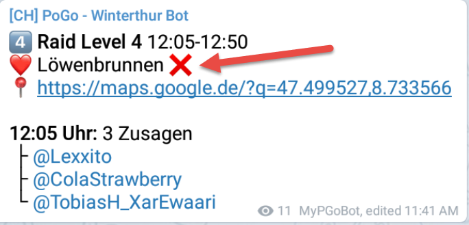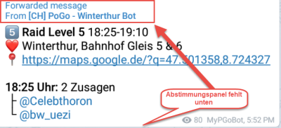 Wir empfehlen jedoch die Methode über den persönlichen MyPGoBot für die manuelle Raideingabe.