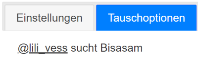 Eure möglichen Tauschpartner sind hier mit einem klickbaren Telegram-User-Link angegeben - tippt einfach den Namen an, um mit der entsprechenden Person den Tausch zu vereinbaren.